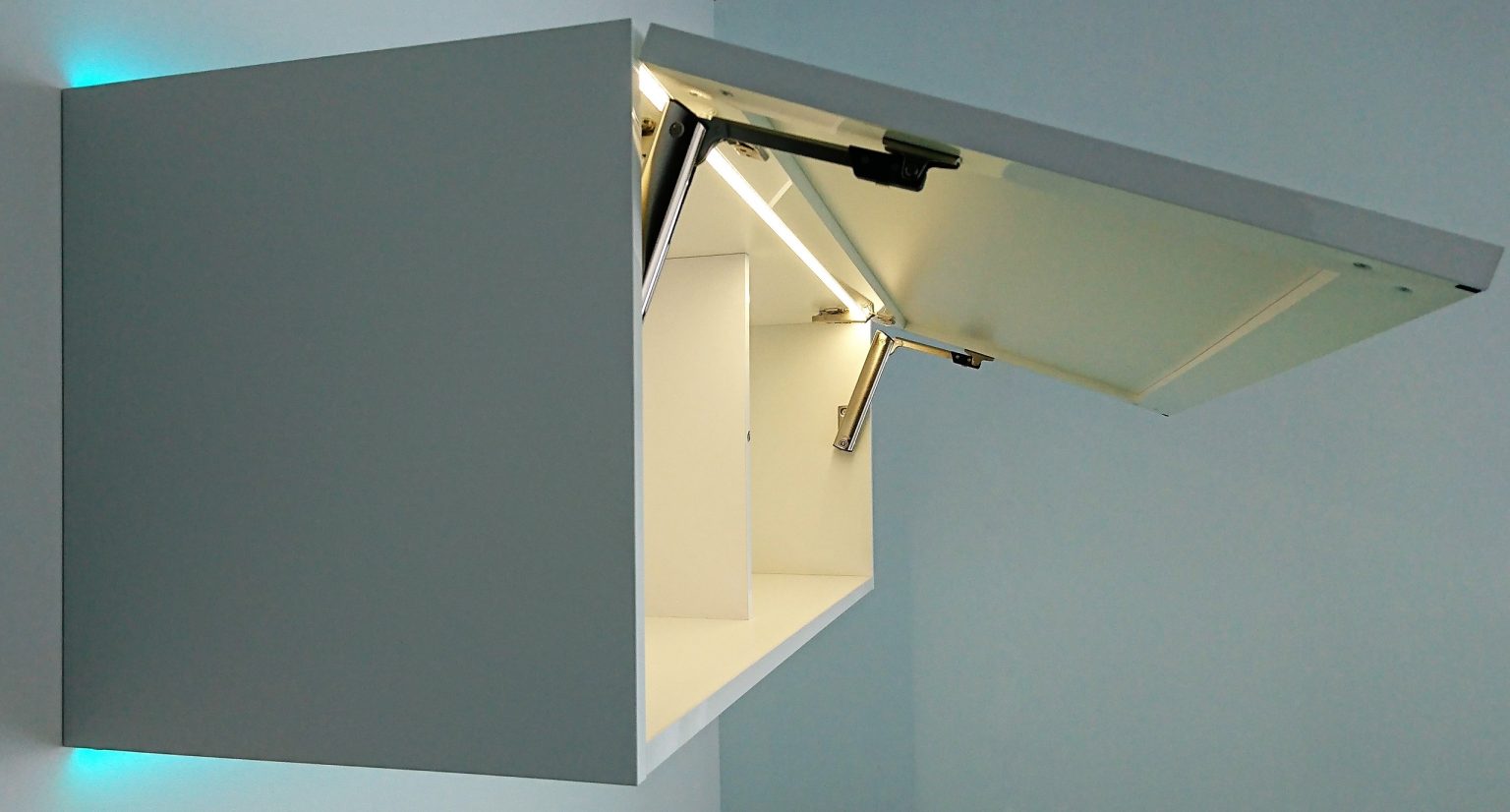 Energooszczędne światło z regulacją barw umieszczone z tyłu szafki posłuży jako nastrojowa lampka nocna.
